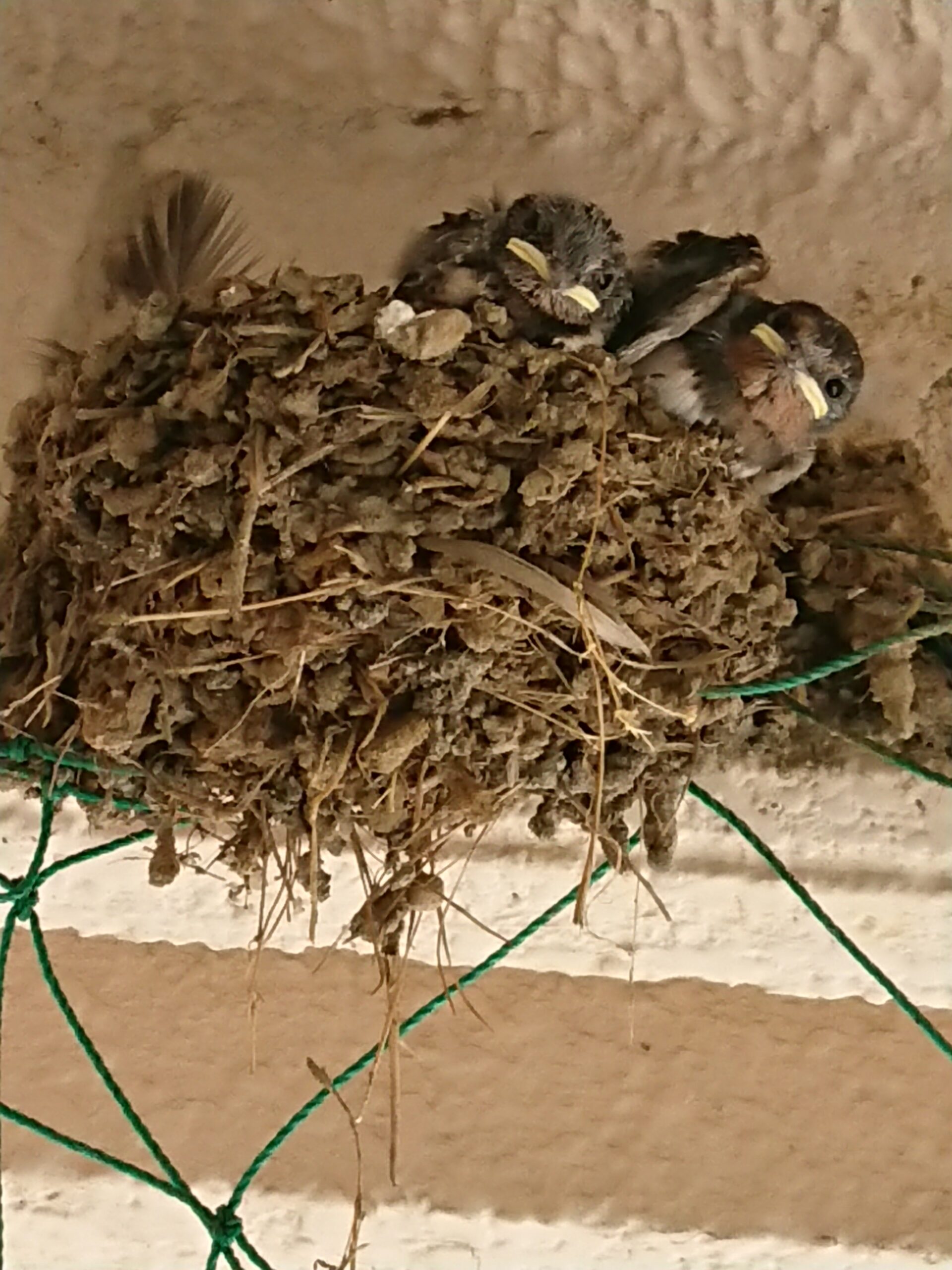 今年もつばめがやってきました。今夏二回目の出産です。今まで使っていた巣の裏側にわざわざ新しい巣を作りました。この可愛い雛を見れるのも、わずか20日程度。従業員にも見守られて、しっかりと成長しています。毎年カラス除けにネットを張っていますが、暑さのせいか今年はカラスの姿がみえません。また来年おおきくなって帰ってきてほしいです。