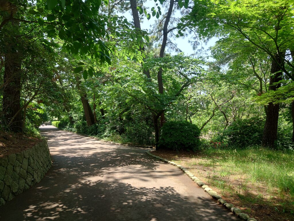 木漏れ日に照らされた遊歩道はなんとも趣があります。時間があったら、ぜひ寺尾中央公園に足を運んでみてください。