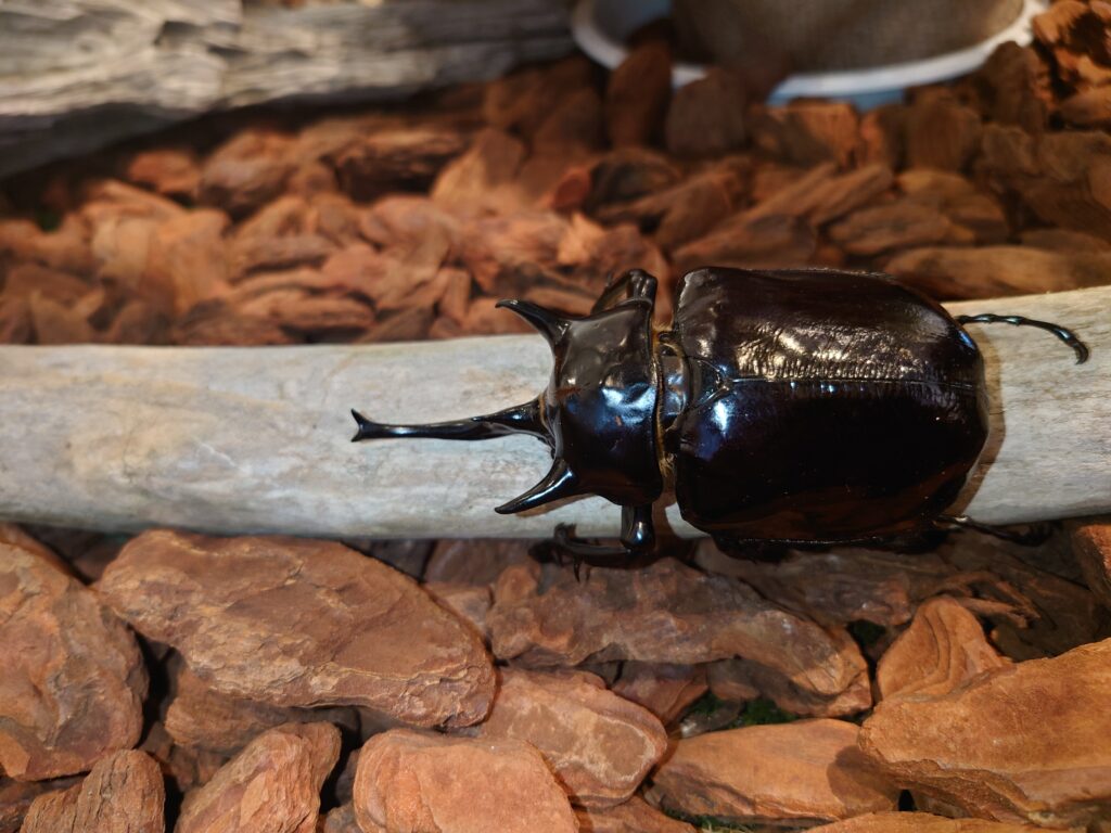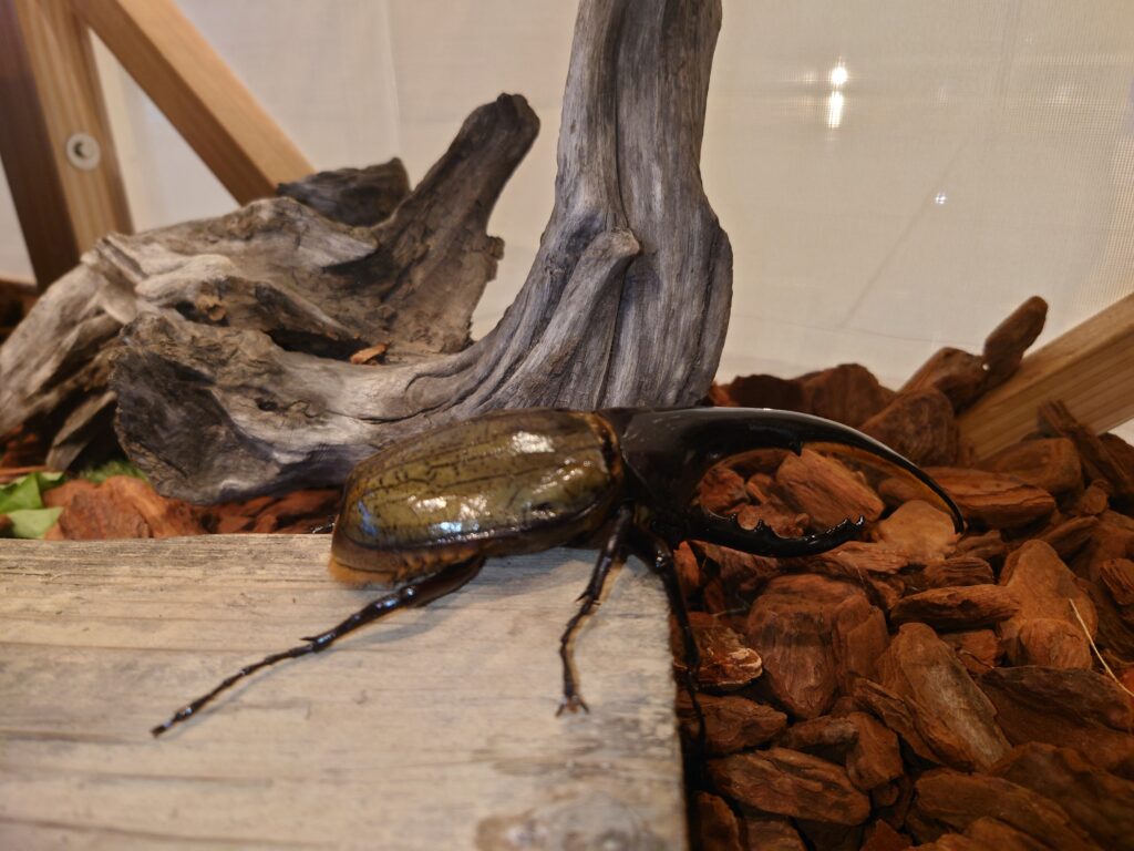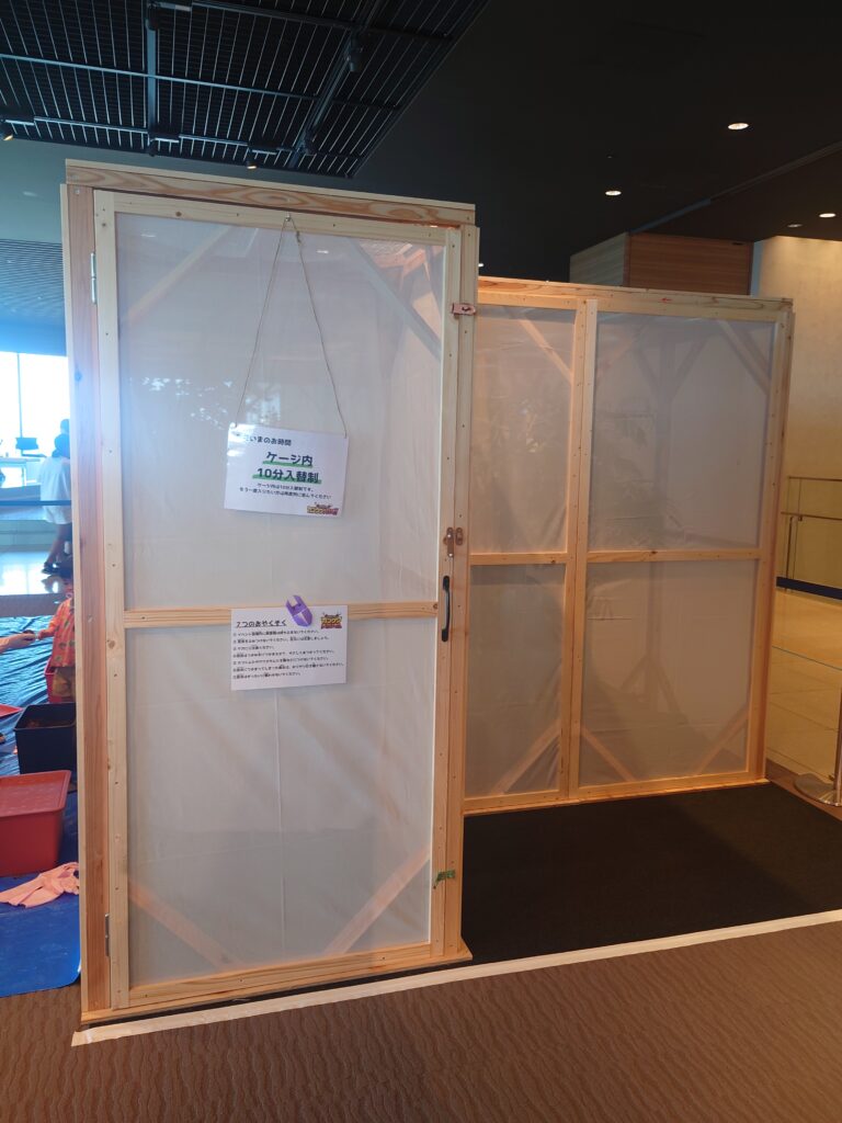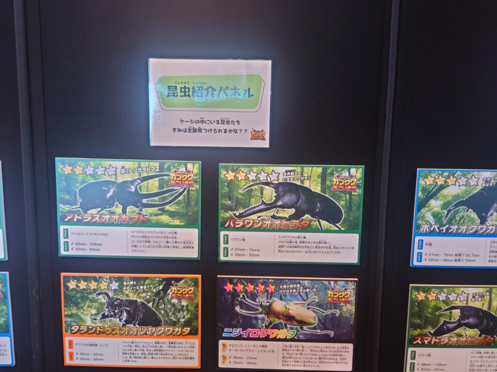 猛暑で外で遊べないこどもたちにおすすめのイベントです。クーラーの効いた会場で、珍しいカブトムシ、クワガタと触れ合えます。(服につけたり、持ち上げたりはできません。触ることはできます。)