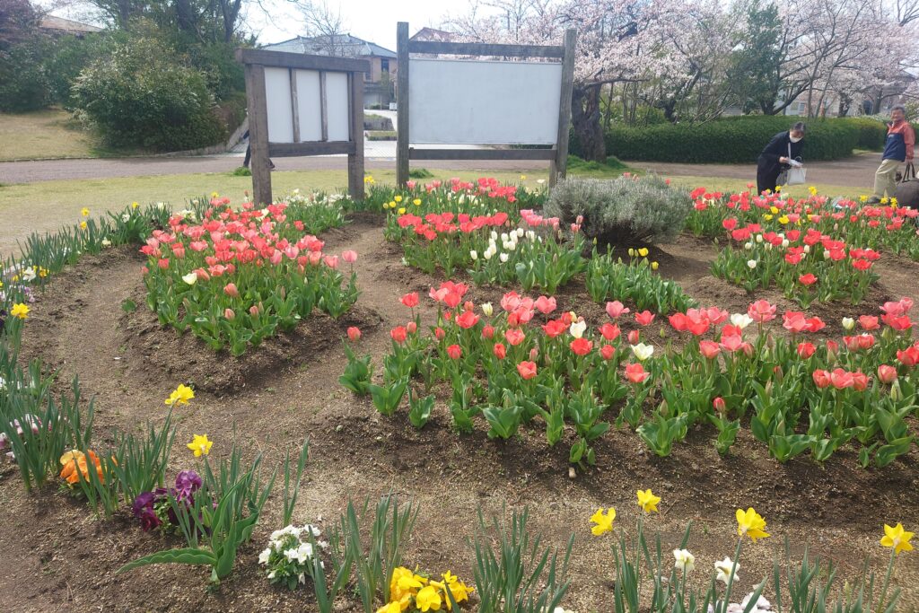 花壇のチューリップも満開。